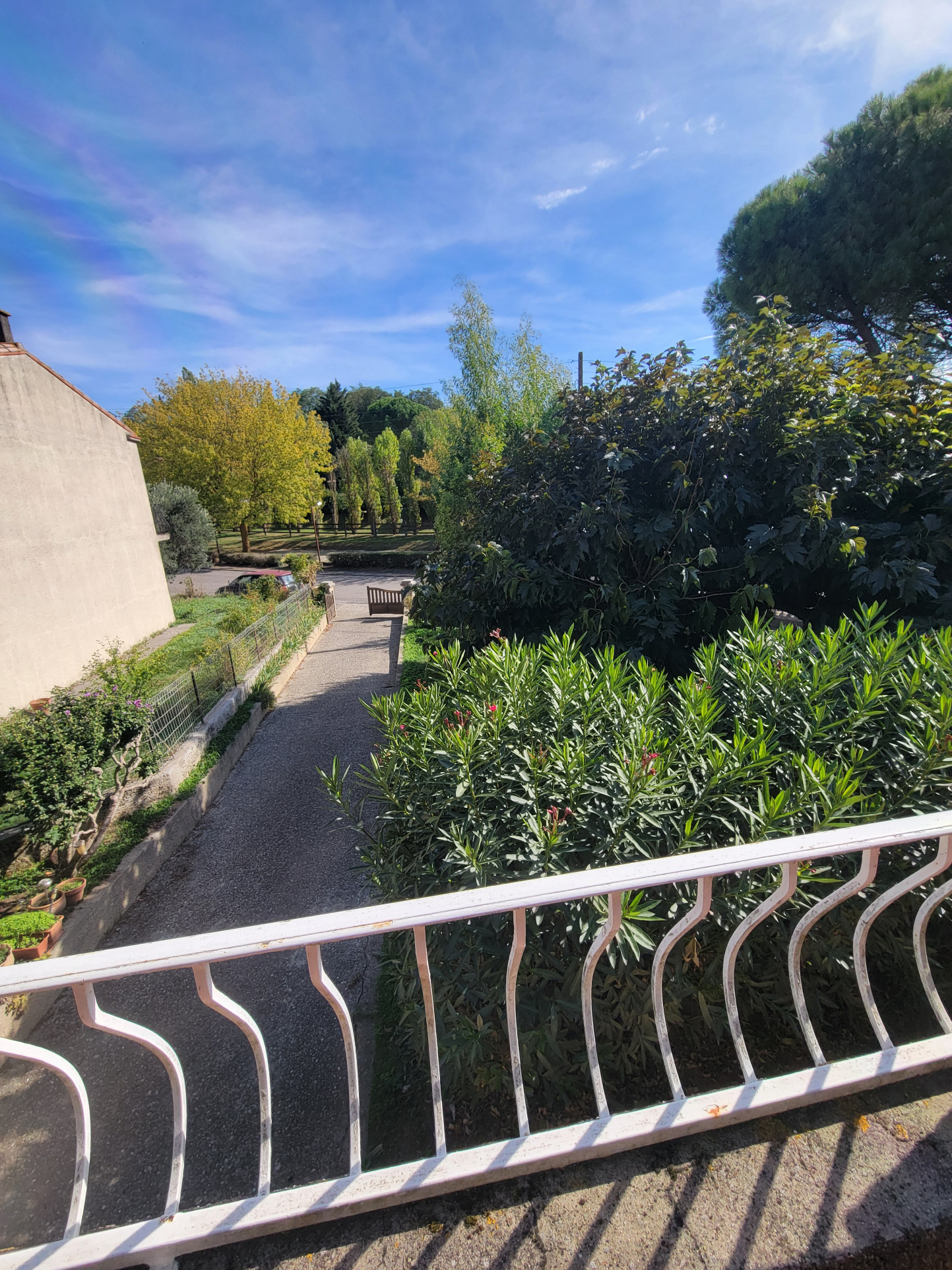 Cheminée et clim réversible, garage, balcon et jardin arboré.