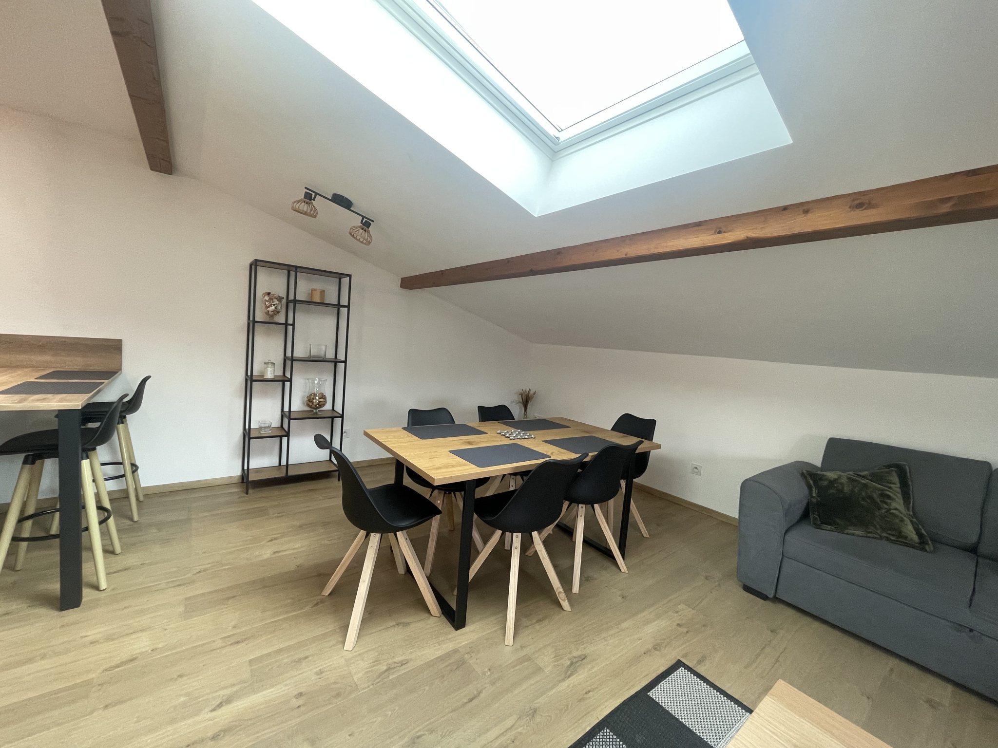 Bel appartement entièrement rénové au premier étage, cuisine ouverte équipée, salon, salle à manger, salle d'eau avec WC, une chambre.