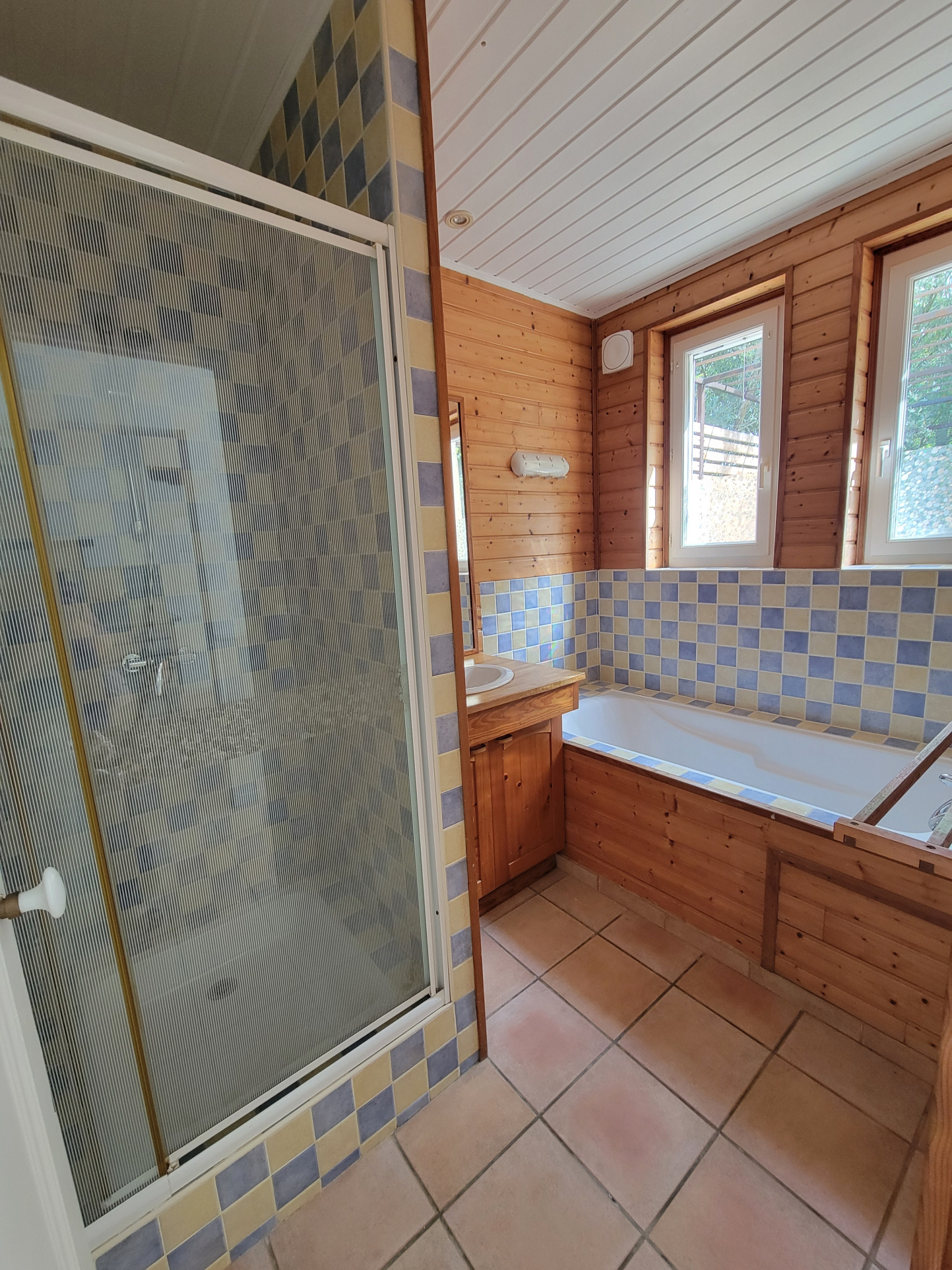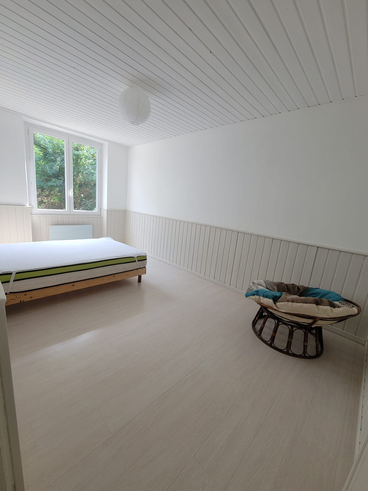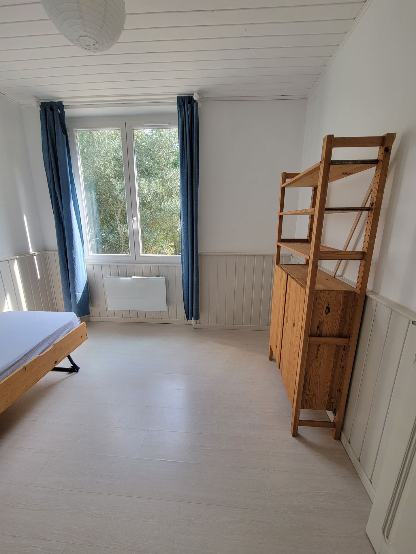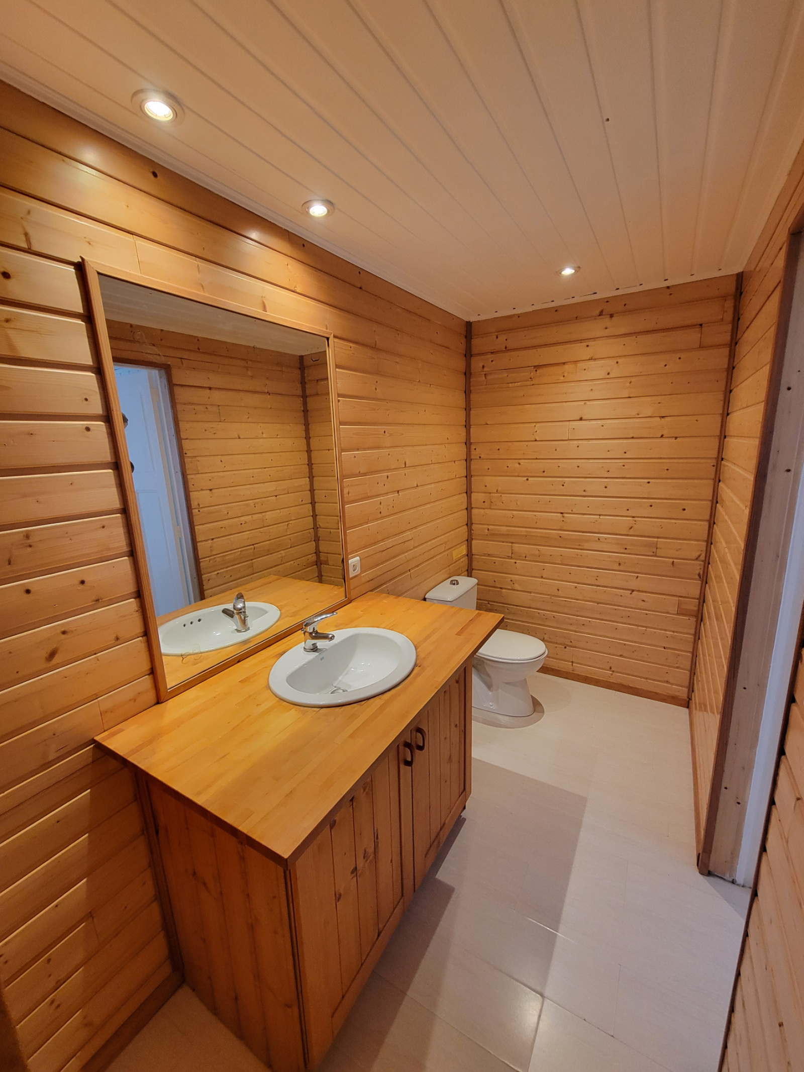 Rdc séjour, avec poêle à bois, cuisine, salle d'eau.