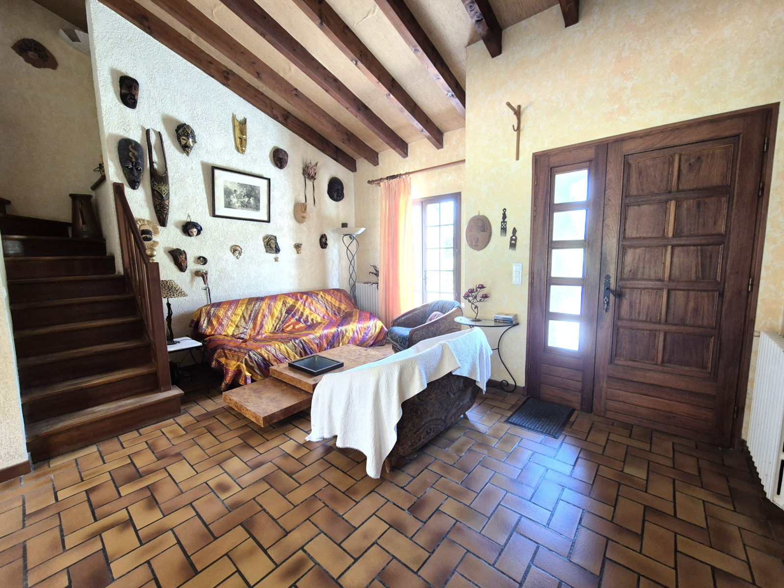 Spacieuse maison essentiellement de plain-pied d'envion 150m² habitables. Elle offre un vaste salon-séjour de 41m² avec insert, une buanderie, quatre chambres équipées de placards et une salle de bains WC.