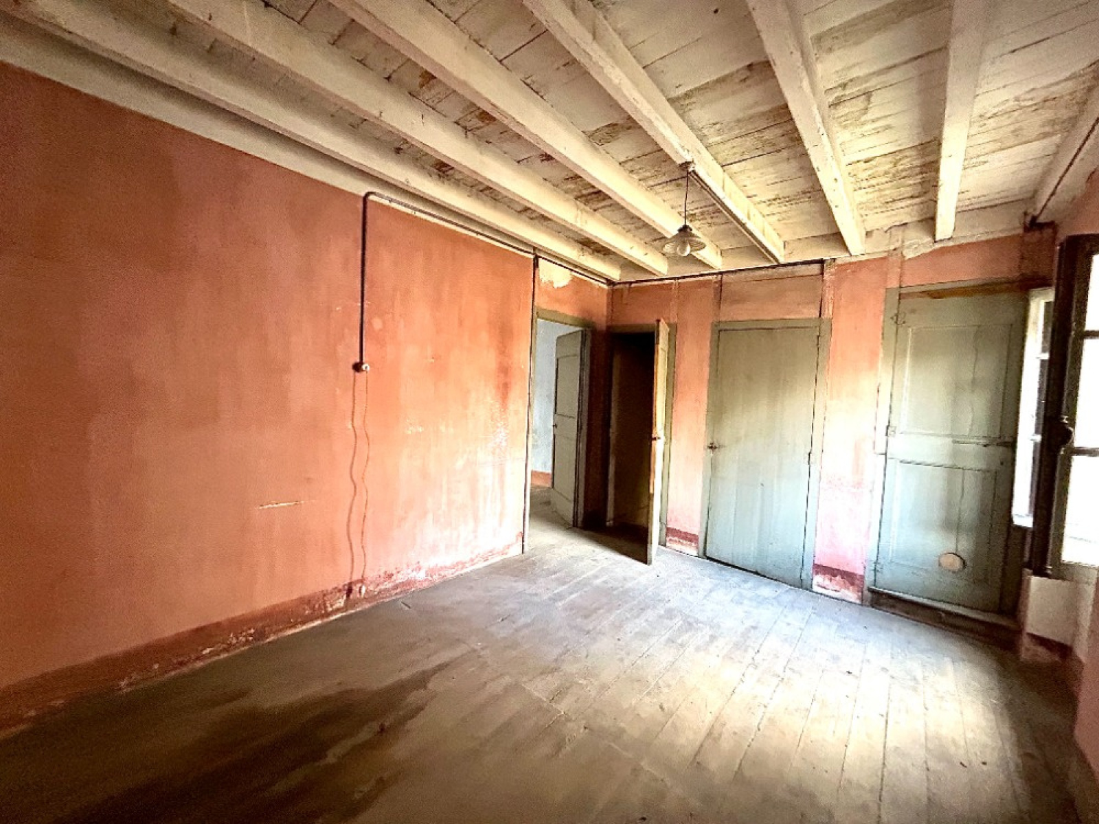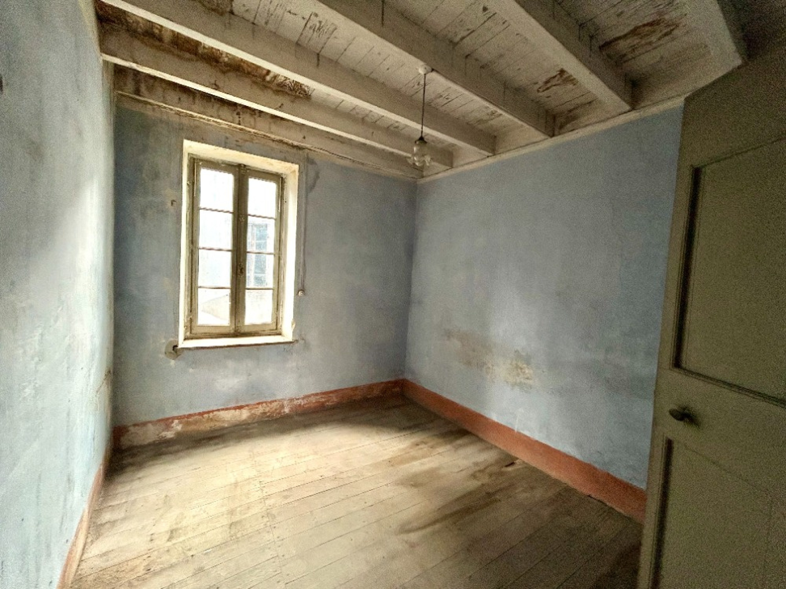chambrePlafond à la Française, plancher bois bon état, fenêtre bois simple vitrage 12 1