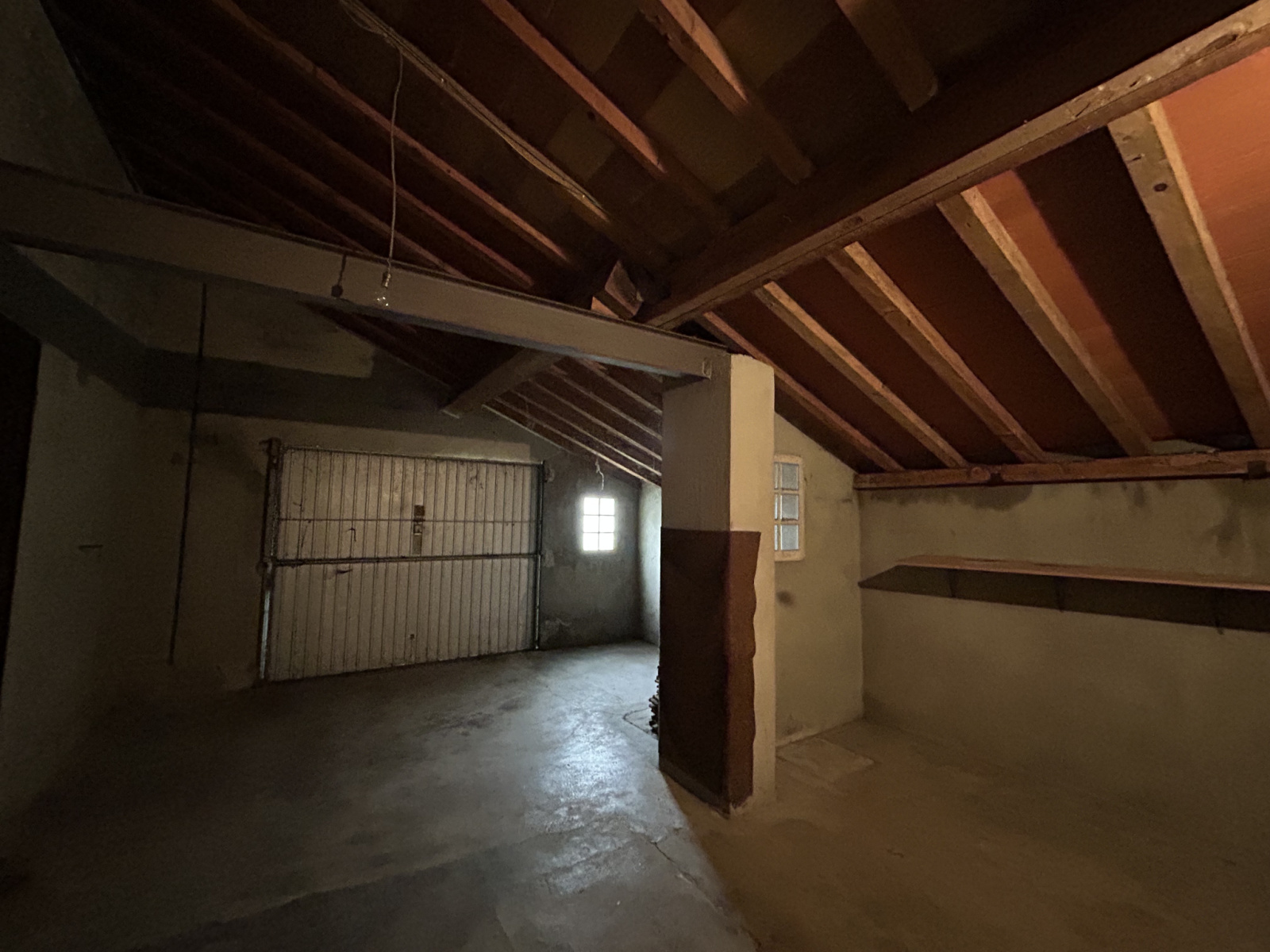 garagePortail bois (accès difficile pour une voiture) sol et murs en béton