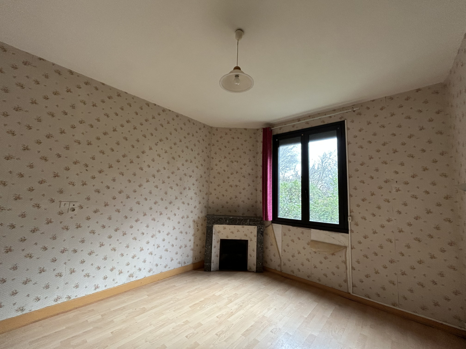 chambreParquet, fenêtre aluminium double vitrage, volet roulant électrique, cheminée d'ornement
