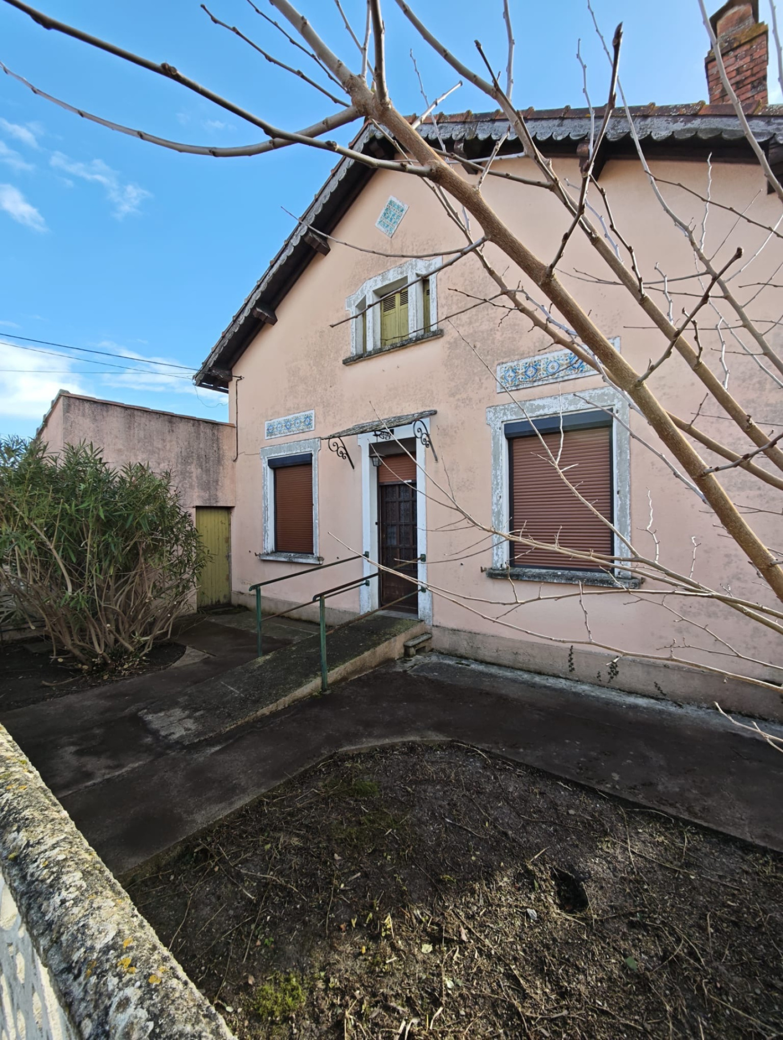 entréeporte ancienne doublée par un volet en aluminium, carrelage ciment peint
