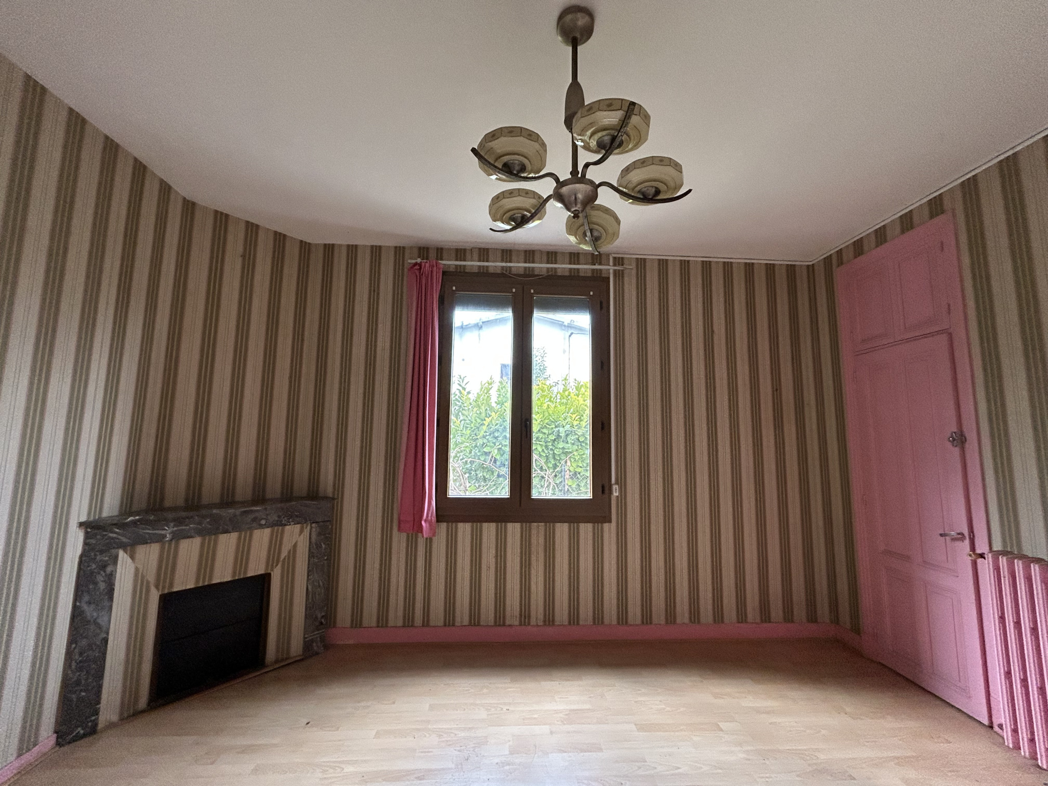 chambreparquet flottant, fenêtre double vitrage, volet roulant électrique, radiateur, cheminée d'ornement