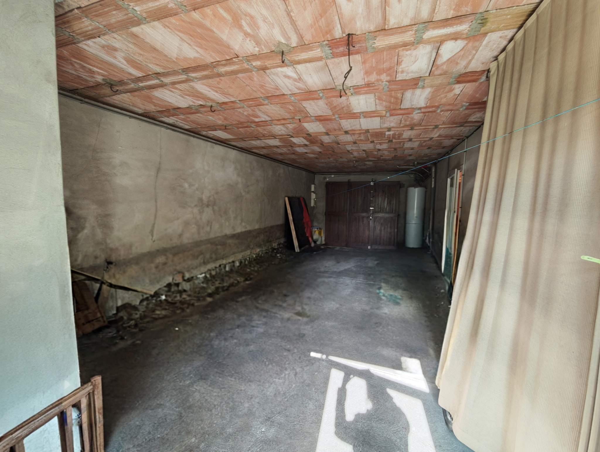 au rez-de-chaussée, une cuisine séparée, un salon convivial et un vaste garage d’environ 38 m².