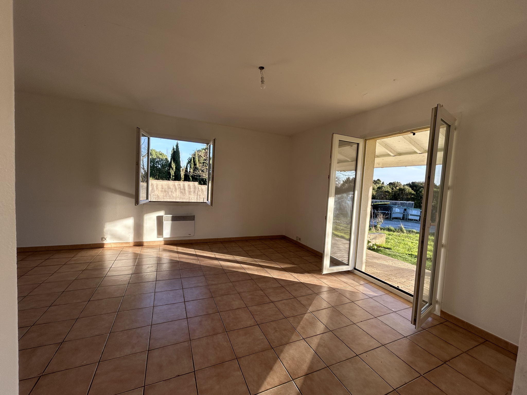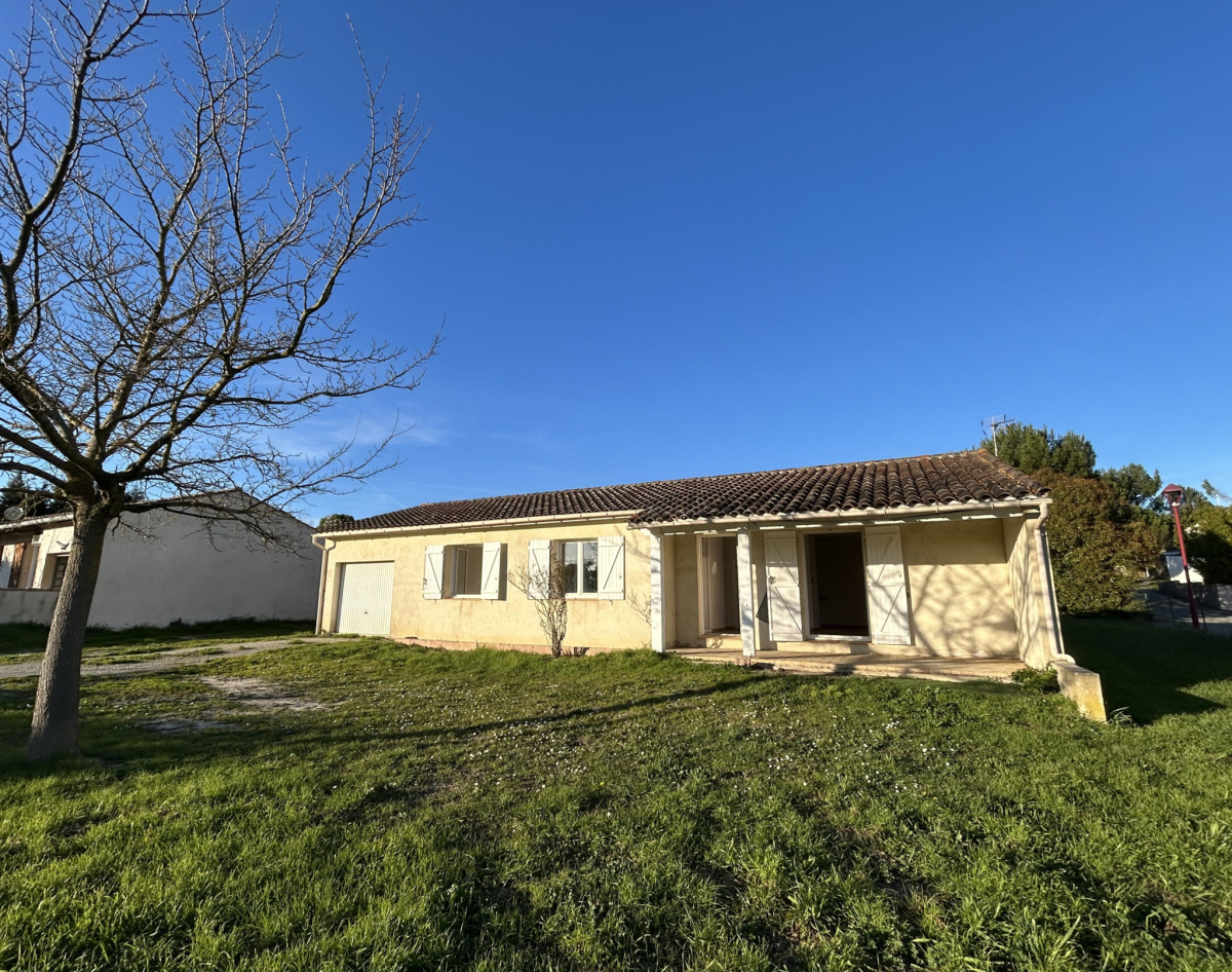 Villa de plain pied implantée sur une parcelle de 1 077 m², comprenant pièce à vivre avec cuisine ésuipée, 3 chambres, salle de bain.