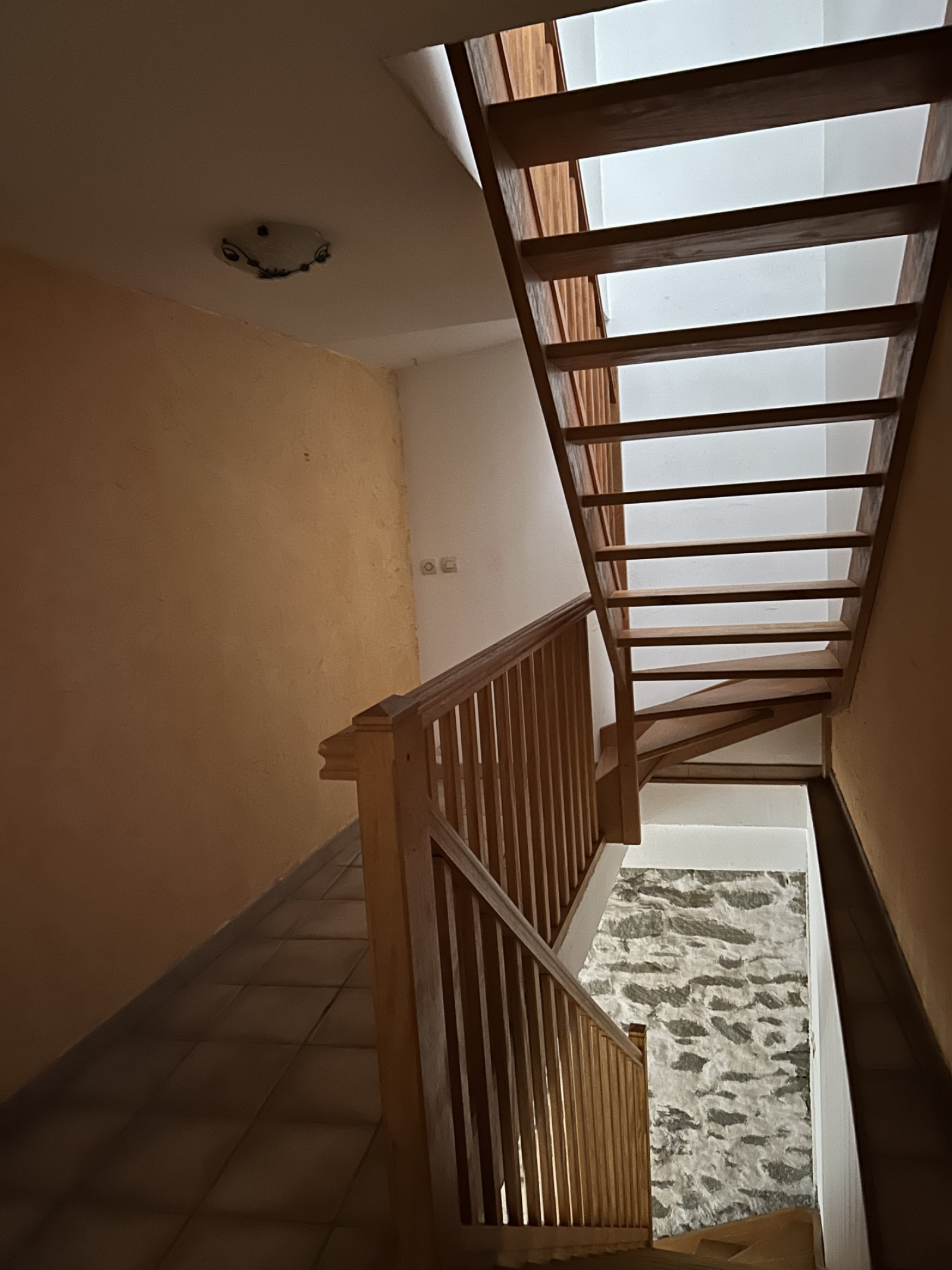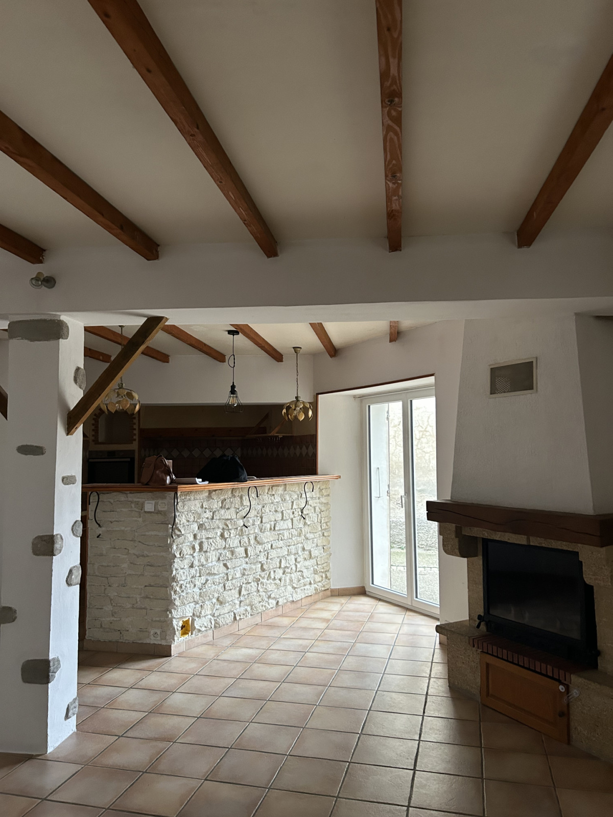Au rez-de-chaussée, une grande pièce à vivre d’environ 30 m² vous accueille, réchauffée par un insert à bois pour l’hiver et rafraîchie par une clim réversible pour l’été. Un séjour attenant d’environ 17 m² complète l’espace convivial.