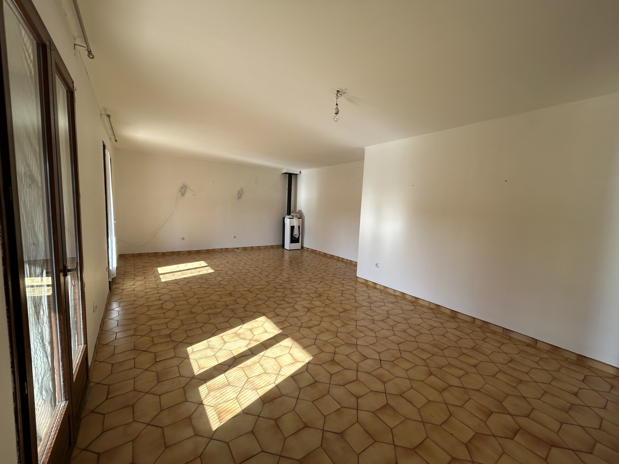 Séjour lumineux, accompagné d’un poêle à bois, cuisine séparée équipée fonctionnelle,