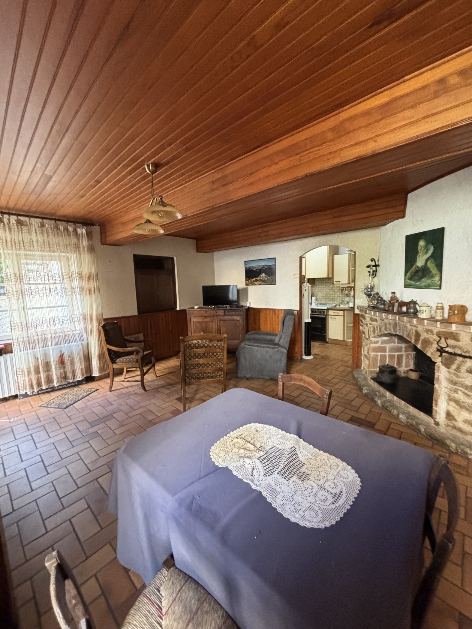 Maison de village de type 5 avec remise de 30 m2, charmante cour entourée de murs en pierres (100 m2 environ en partage avec le voisin), chauffage central au fioul chaudière récente, électricité refaite il y a 4 ans, toiture en bon état, prévoir travaux de modernisation des sanitaires, des sols, changement des menuiseries en double vitrage. Maison exposée à l' Est, lumineuse, libre sur 2 faces, dans un endroit calme et à 2 min à pied de toutes les commodités.