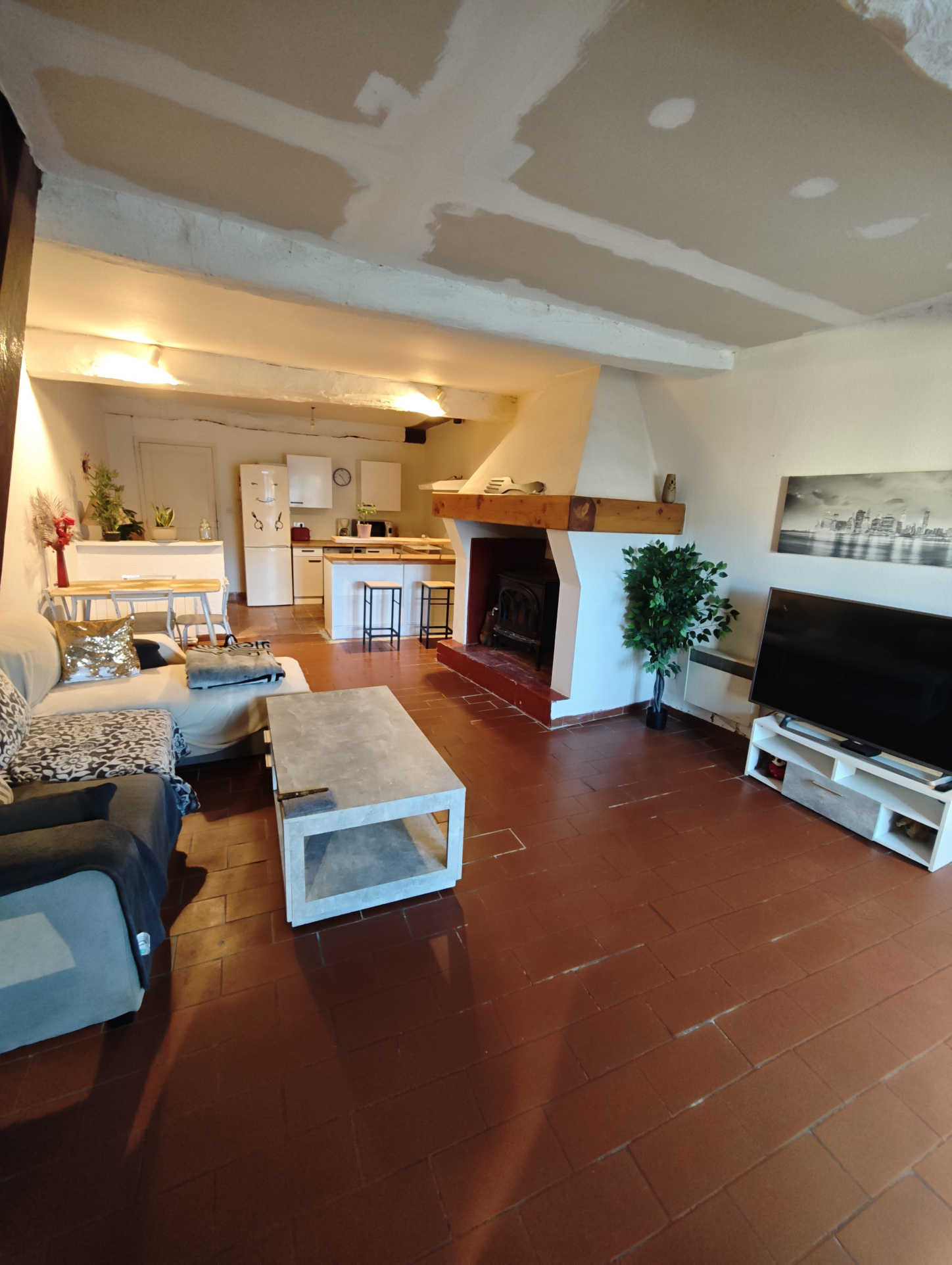 Partiellement rénovée, la maison a conservé son authenticité et son charme. Dès l’entrée, l’atmosphère chaleureuse se fait sentir : un grand séjour agrémenté d’un poêle à bois , trois chambres dont une avec dressing, une salle d’eau, une salle de bain, un WC et un sani-broyeur.